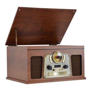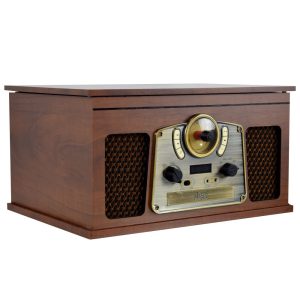 Rádio Retro Madeira Gira Discos CD K7 com colunas – 210€